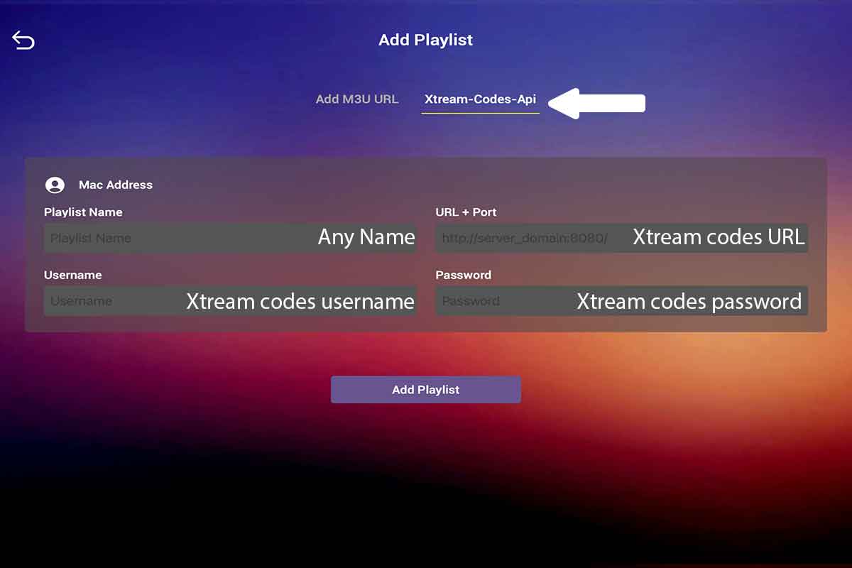 Geben Sie die per E-Mail erhaltenen Xtream-Codes ein.